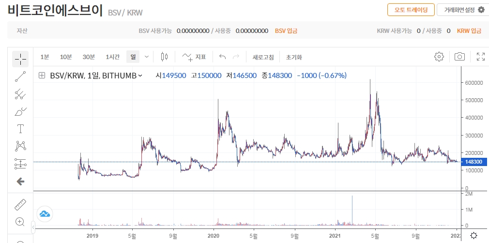 빗썸 기준으로 비트코인 에스브이는 2018년 말쯤에 상장을 하였고