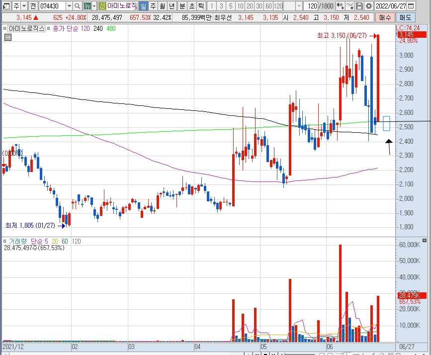 최근 많은 거래량과 거래대금이 들어오고 있음