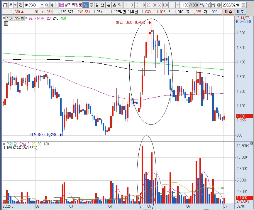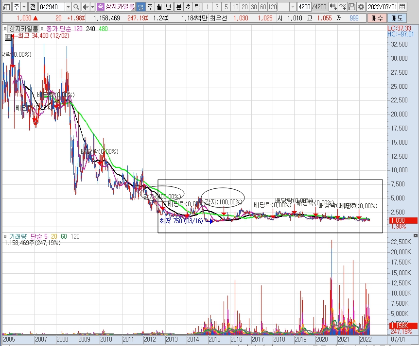 이런 회사들끼리 '3자배정을 하니, 뭐 인수를 하니' 등의 뉴스가 나올 경우 잠깐의 호재거리가 되며 바로 상한가를 가지만