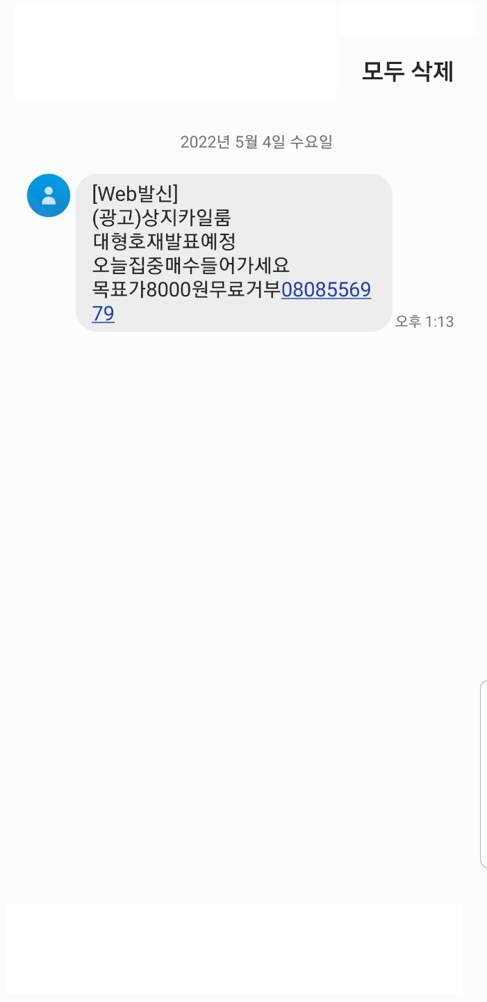 여기까지 마무리를 하고 혹시 상지카일룸의 문자를 보고 투자를 하실려는 분들이 있을까봐 당부의 말씀을 올림