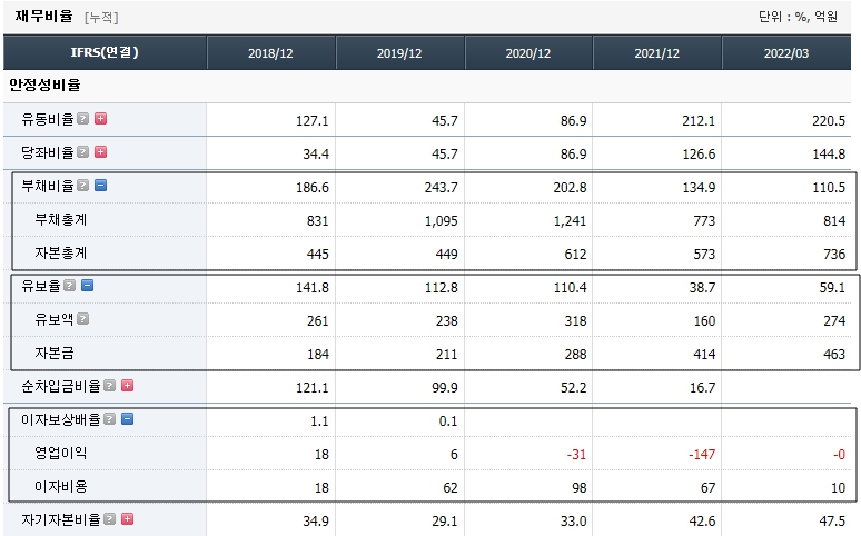 부채비율 부분은 지속적으로 부채과 자본을 잡아먹는 그림을 그리고 있음