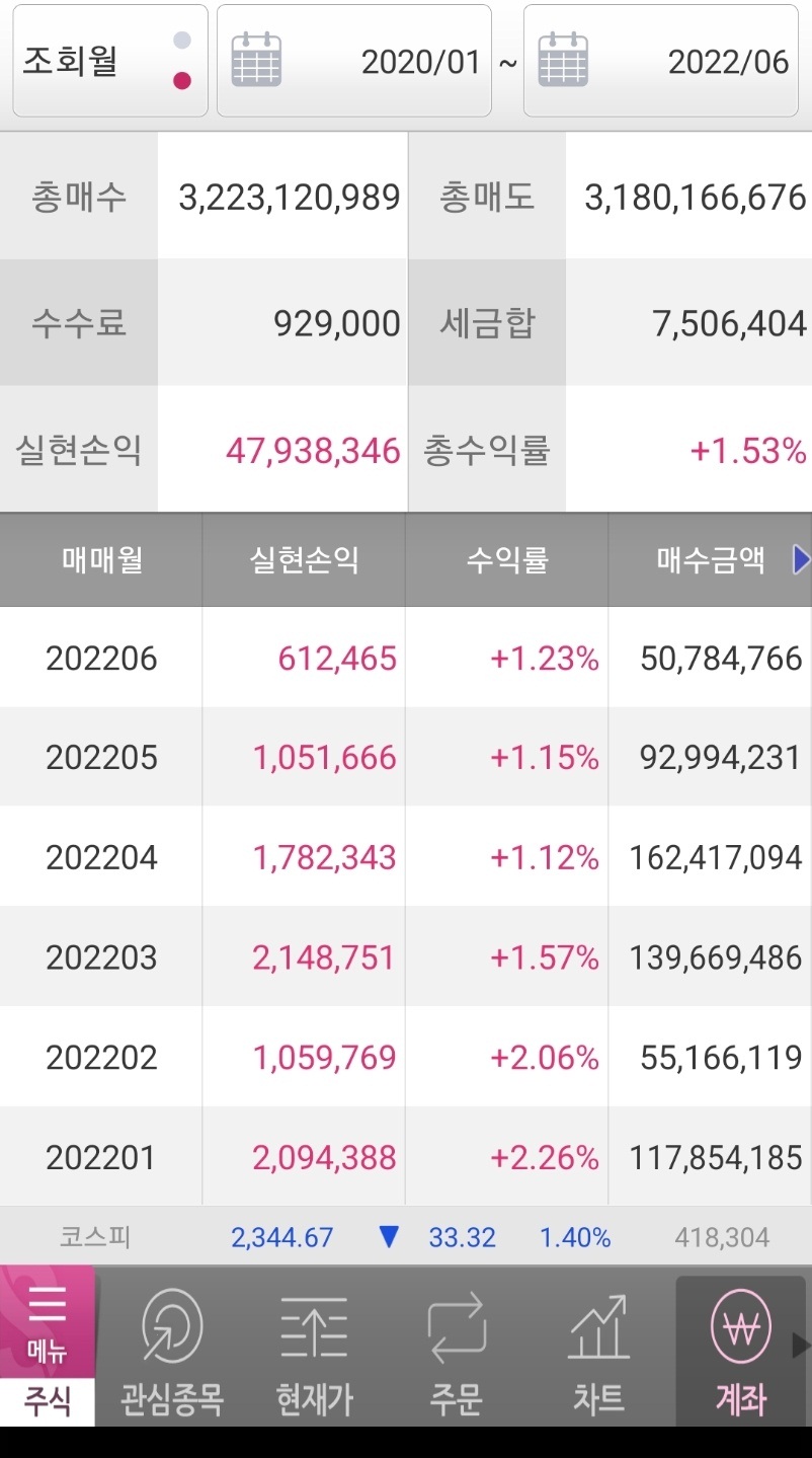 단타를 할때는 시장이 시작하고 시장이 끝날때까지 HTS를 봤는데, 단기스윙으로 바뀌니까 편안하게 MTS로만 보면서 매매를 하게 되었음