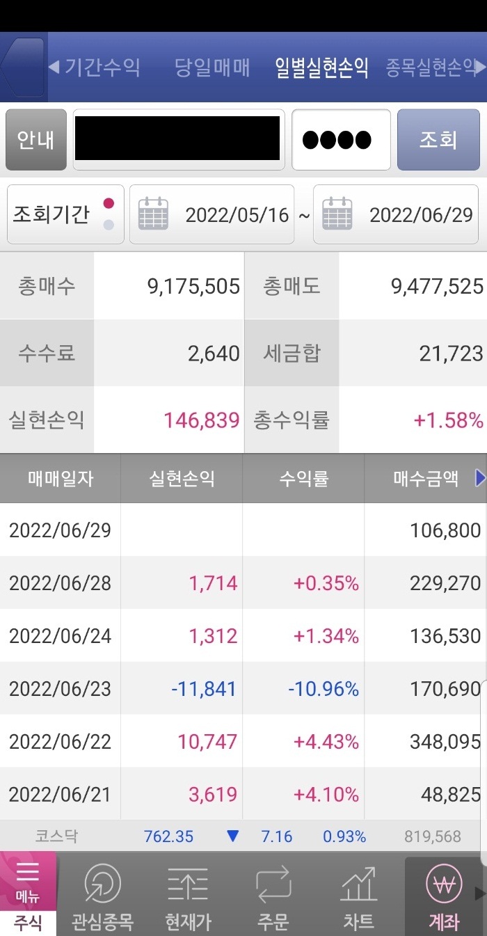 2~4번째 사진을 보시면 제대로 확인을 할수가 있음 (한때 이벤트로 수수료가 없었던 한국투자, 유안타투자. 유진투자 중 셋 중에 한개일 것인데... 그 계좌가 단타수익이 괜찮았음 하지만 이것도 아이디를 모르겠음)