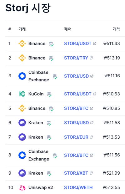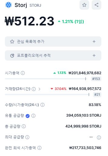 Storj (STORJ) 가격, 차트, 시가총액 | 코인마켓캡
