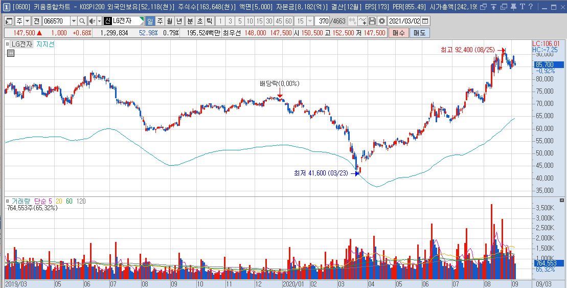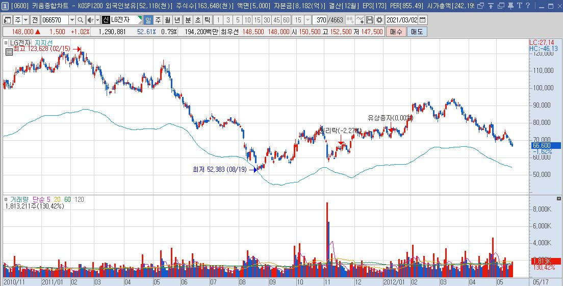 LG전자는 엔벨로프 하단선이 잘 닿았고