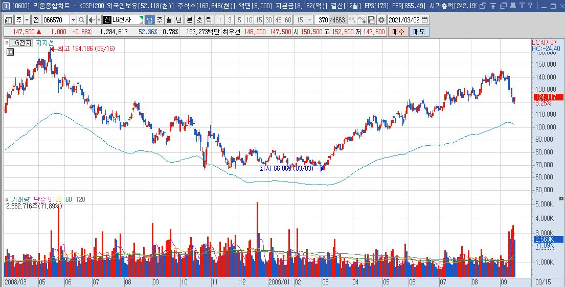이렇게 LG전자는 대폭락장에 20,25 수치가 정확하다는것을 알게 되었다.